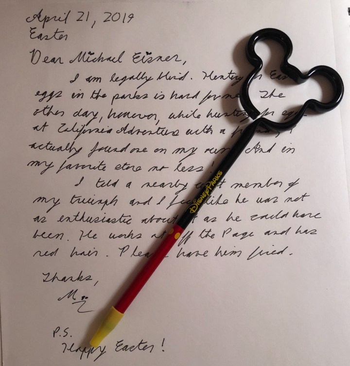 I am legally blind. Hunting for Easter eggs at the parks is hard for me. The other day, however, while hunting for eggs at California Adventure with a friend, I actually found one on my own! And in my favorite store, no less!